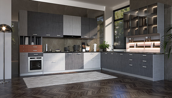 精致干練源于內心的強大,雅致布紋與輕奢皮革的碰撞,是理性與感性的交融,極簡的瓷泳灰輕奢鋼化灰玻中和了空間的色彩,高端,簡雅,這就是慕格所表達的設計理念。